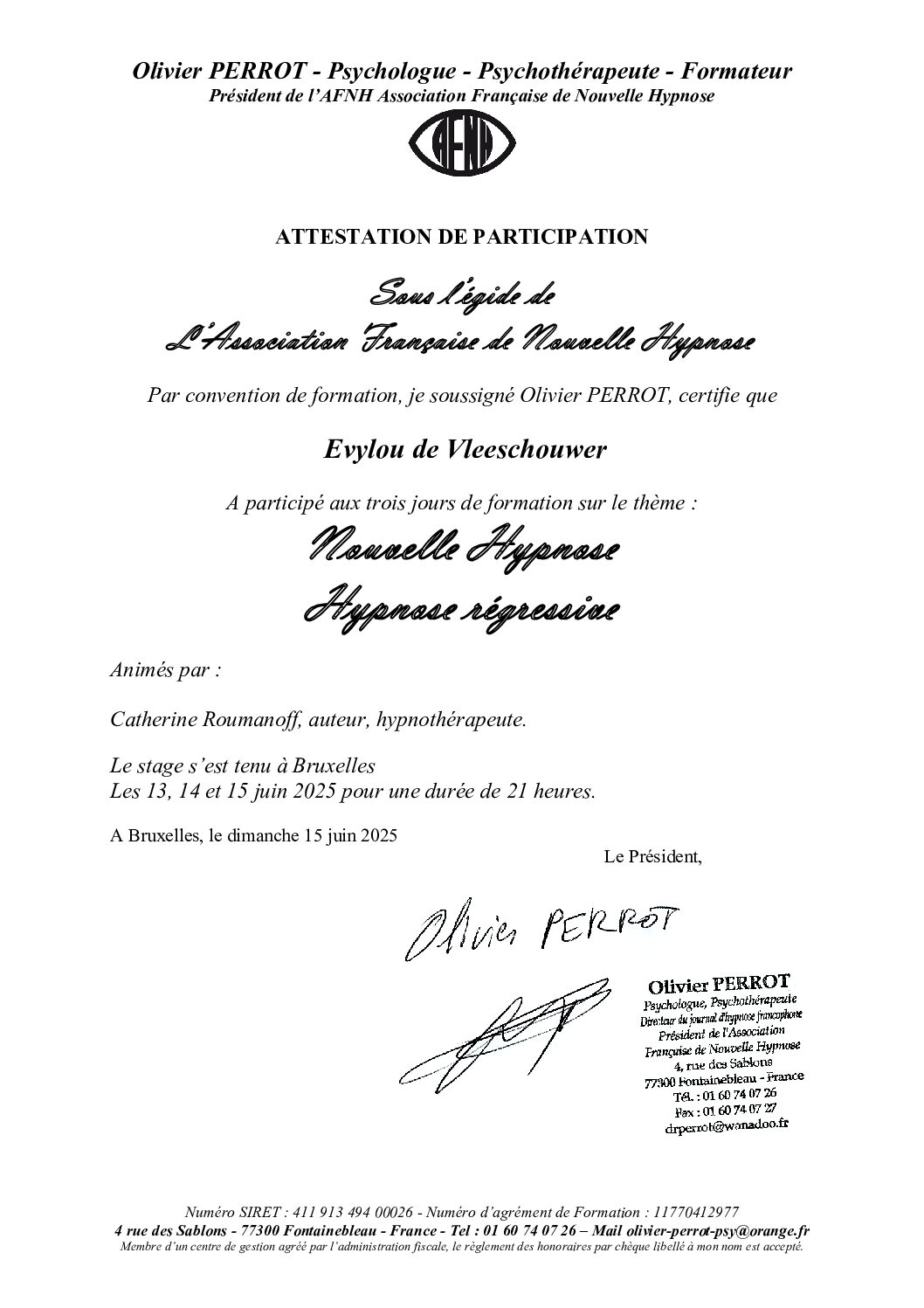 Après avoir obtenu ma certification en coaching professionnel (Linkup, France), j’ai exercé en tant que coach professionnel et personnel. Au fil du temps, j’ai réalisé que l’hypnose pouvait apporter une réelle valeur ajoutée à ce processus. J’ai ainsi obtenu mes certifications en hypnose Ericksonienne et Elmanienne, ainsi que de nombreuses spécialisations (tabac, addictologie, poids, hypnose directive, regression dans les vies antérieures…). Je suis également membre de la NGH (National Guild of Hypnotists),